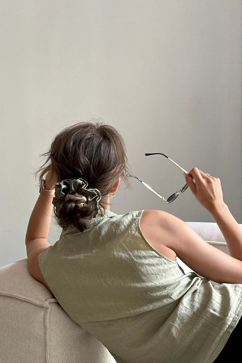 KATRINA SILKS Natural silk scrunchie Vineyard Green