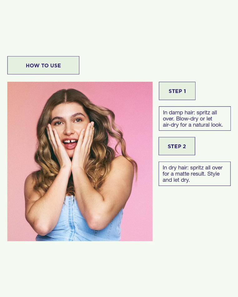 A nourishing texturizing saltwater spray with light hold that gives a salty feeling and adds volume. Use in damp hair to create a lighter salty beach look. Salty Mist is suitable for both longer and shorter hair and has a low concentrate of salt, which gives a lighter hold than the Ocean Spray. Salty Mist has a floral scent of bergamot and Bulgarian rose. Colour Guard Complex helps preserve the colour by protecting your hair from UV radiation and free radicals.